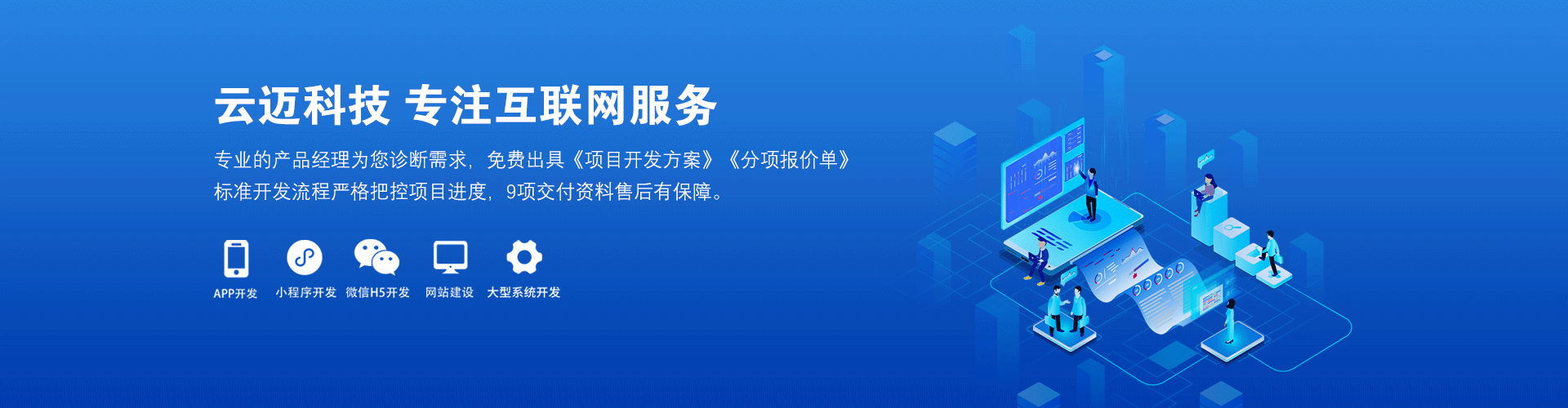 云邁科技是國家高新技術企業、雙百企業。現于長沙、北京、湘潭均設立分公司,是專業的軟件開發服務商。依托自主研發的軟件產品CMS、CRM、BPM、SHOP、BI等,為企業提供一站式信息化建設服務,我們將利用創新的“互聯網+技術”推動社會發展與變革。秉持“專業、誠信、共贏”的企業文化,云邁科技在APP開發、微信小程序開發、大型系統定制、網站建設及推廣等業務取得重大突破并為相關行業提供專業的企業解決方案。攜手云邁,量身定制您專屬的互聯網+ !